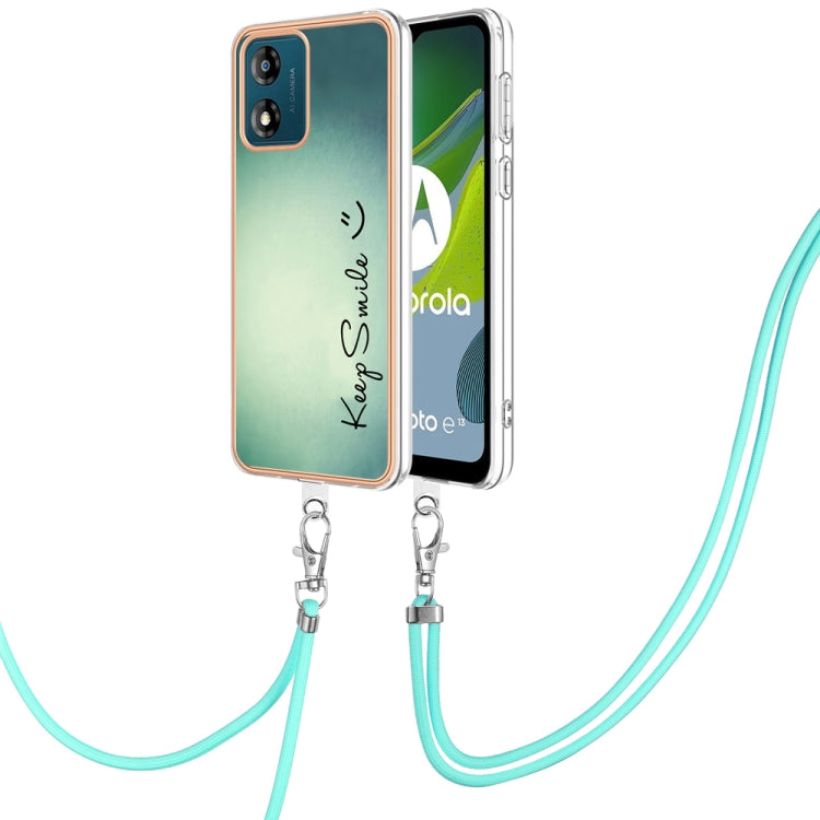 Estuche para Motorola Moto E13 con IMD Doble Cara, Galvanoplastia y Cordón (Sonrisa)