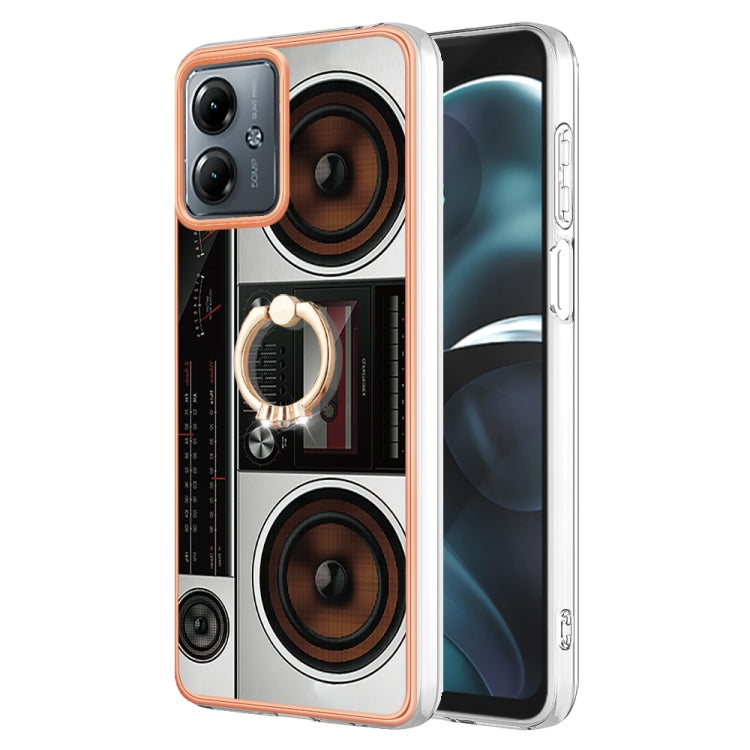 Estuche para Motorola Moto G14 Imd Doble Cara con Galvanoplastia y Soporte Anillo (Radio Retro)