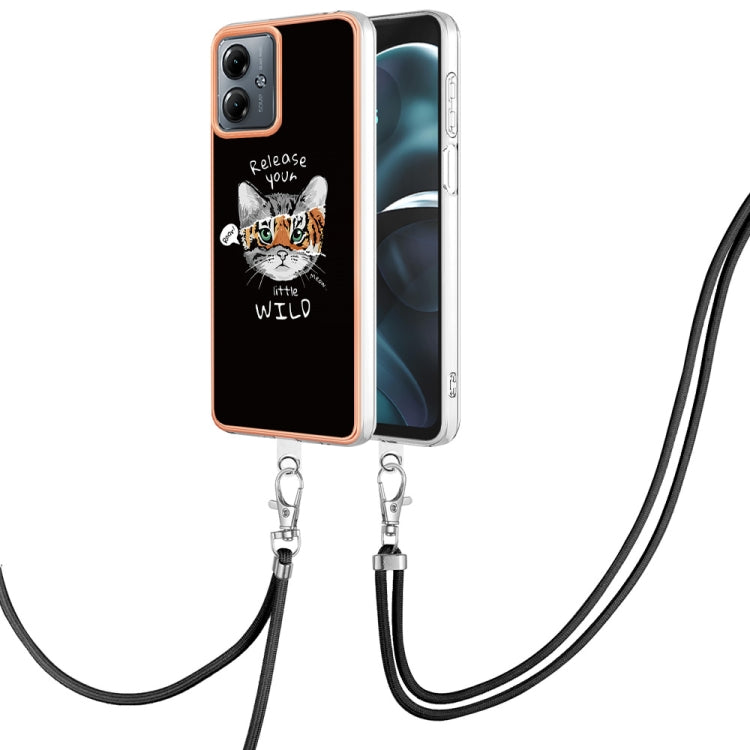 Estuche para Motorola Moto G14 Imd Doble Cara con Galvanoplastia y Cordón (Leopardo)