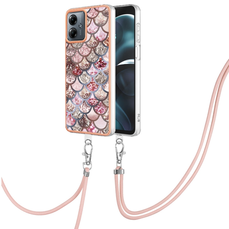 Estuche para Motorola Moto G14 TPU con Galvanoplastia y Cordón (Escamas de Colores)