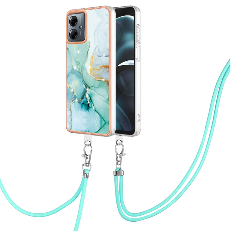 Estuche para Motorola Moto G14 Imd Doble Cara Mármol Galvanizado con Cordón (Verde)