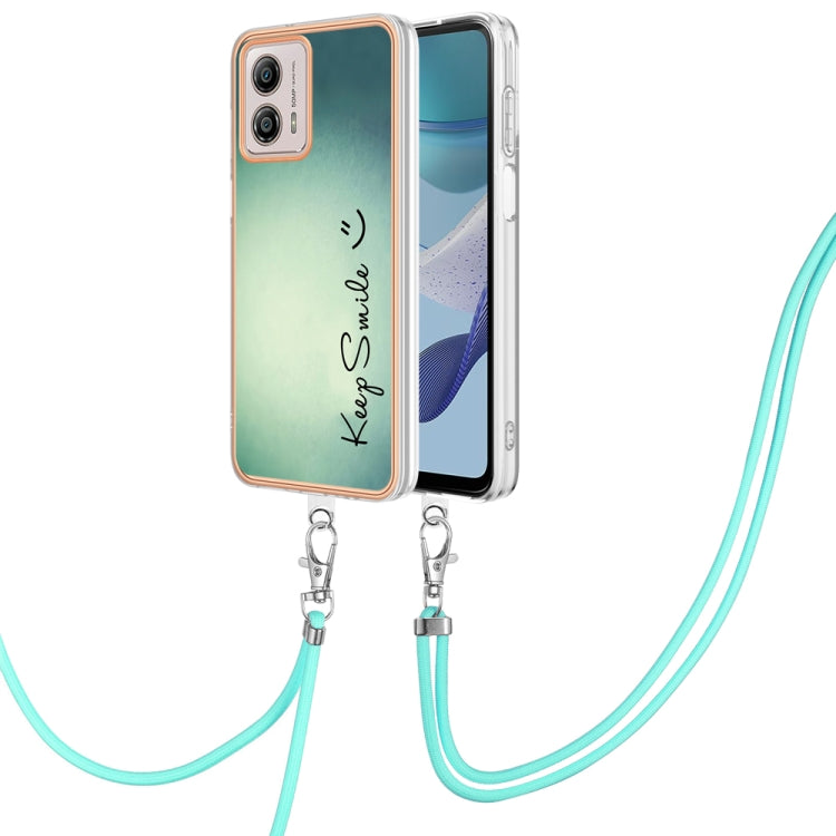 Estuche para Motorola Moto G53 / G13 / G23 IMD Doble Cara con Galvanoplastia y Cordón (Sonrisa)
