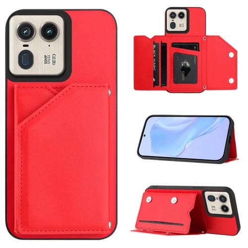 Estuche para Motorola Moto X50 Ultra Skin Feel con 4 Ranuras para Tarjetas y Correa (Rojo)