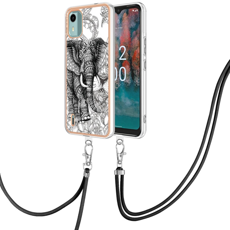 Estuche para Nokia C12 IMD Doble Cara con Galvanoplastia y Cordón (Totem Elephant)