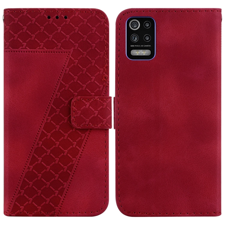 Estuche de Cuero En Relieve en Forma de 7 para LG K52 / K62 / Q52 (Rojo)