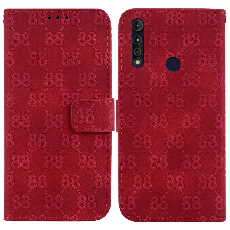 Estuche de Cuero en Relieve para Motorola Moto G8 Power Lite con Doble Forma de 8 (Rojo)