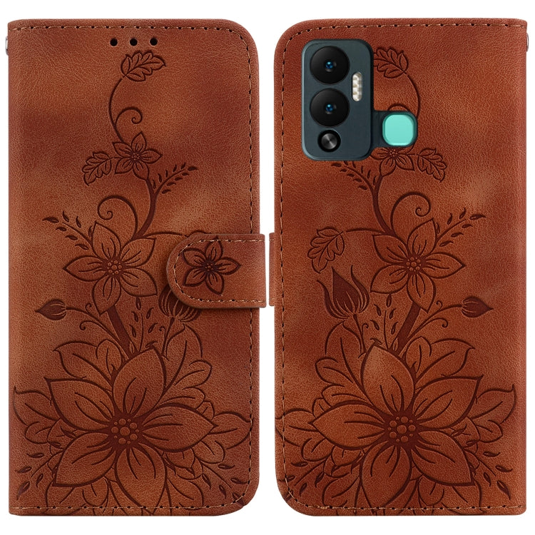 Estuche de Cuero En Relieve para Infinix Hot 12 Play Lily (Marrón)