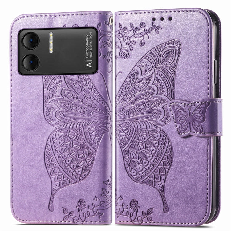 Estuche de Cuero en Relieve para Doogee X98 Pro y X98 Butterfly Love Flower (Púrpura)