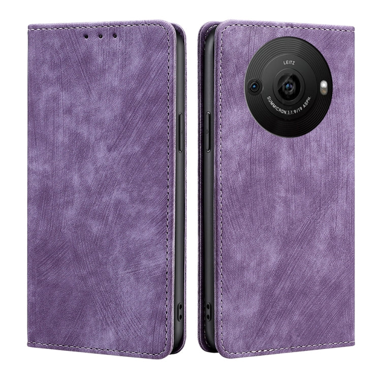 Estuche de Cuero Magnético para Sharp Aquos R8 Pro Sh-51D con Rfid y Cepillo Antirrobo (Púrpura)