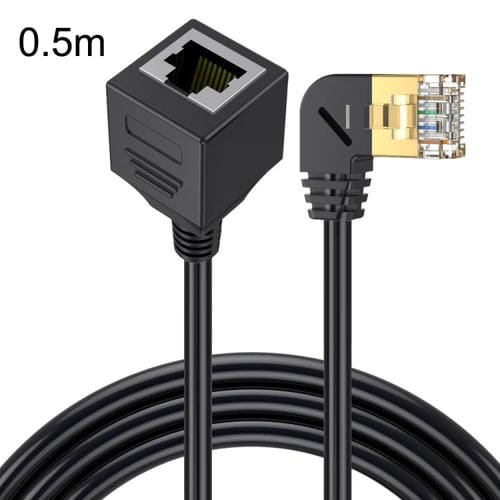 Cable de Extensión de Red Right Bend Cat 8 0.5M 10G RJ45 Macho a Hembra (Negro)