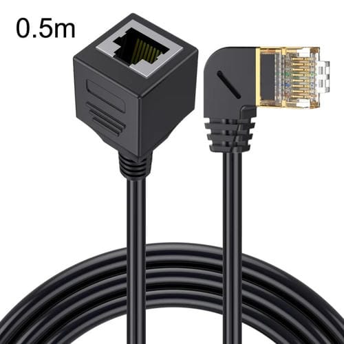 Cable de Extensión de Red de Computadora Down Bend Cat 8 10G RJ45 Macho a Hembra 0.5M (Negro)