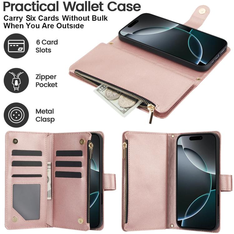 Funda de piel de cordero con ranura para 8 tarjetas para iPhone 17 Pro (oro rosa)