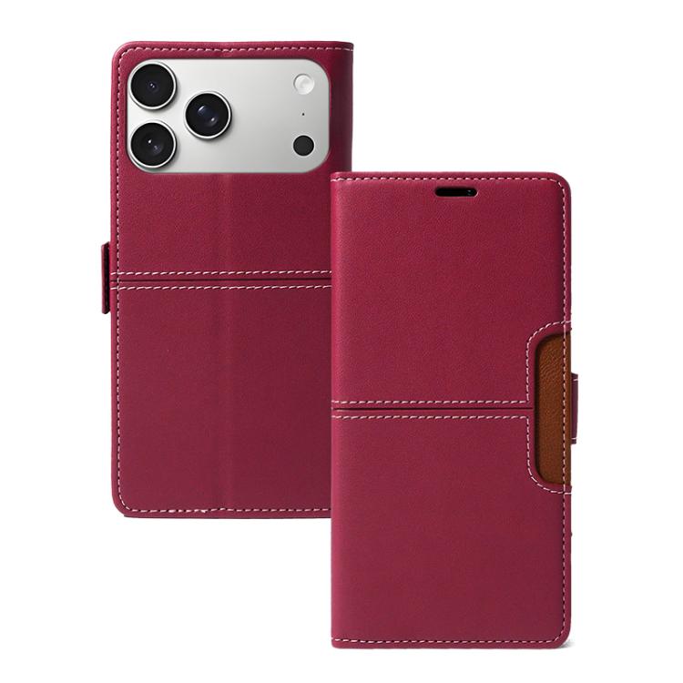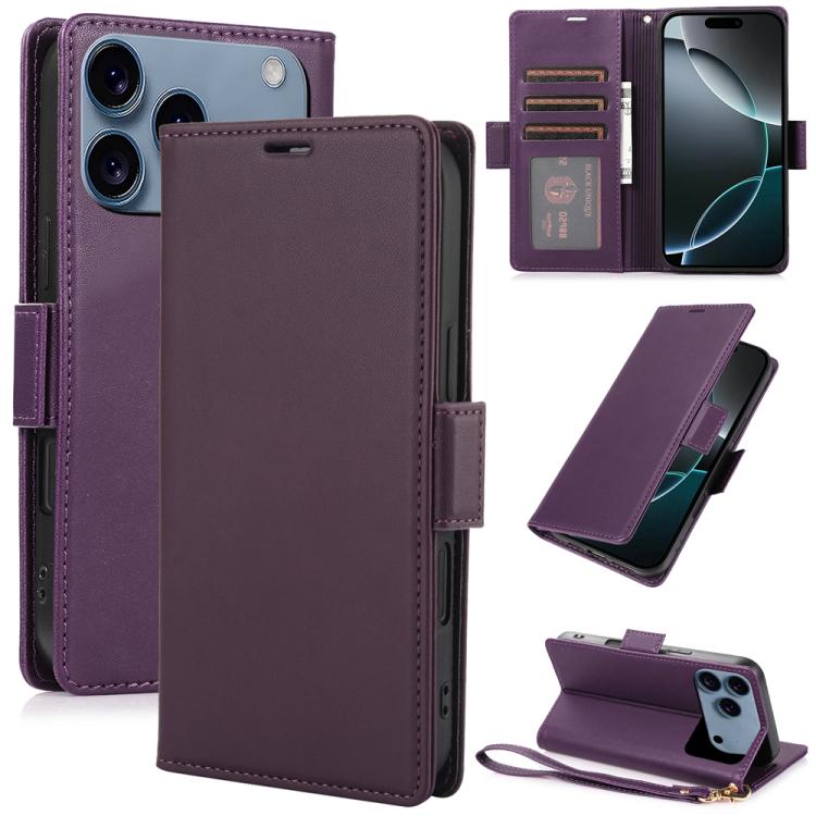 Funda de cuero antirrobo RFID con hebilla lateral para iPhone 17 Pro (morado oscuro)