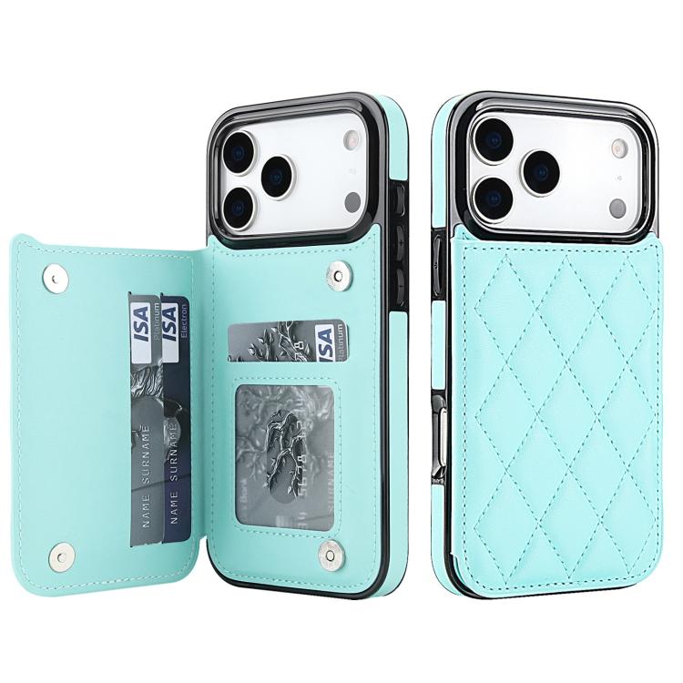 Funda de piel sintética con doble hebilla y diseño rómbico para iPhone 17 Pro (verde)