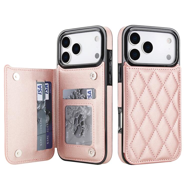 Funda de piel sintética con doble hebilla y diseño rómbico para iPhone 17 Pro (oro rosa)