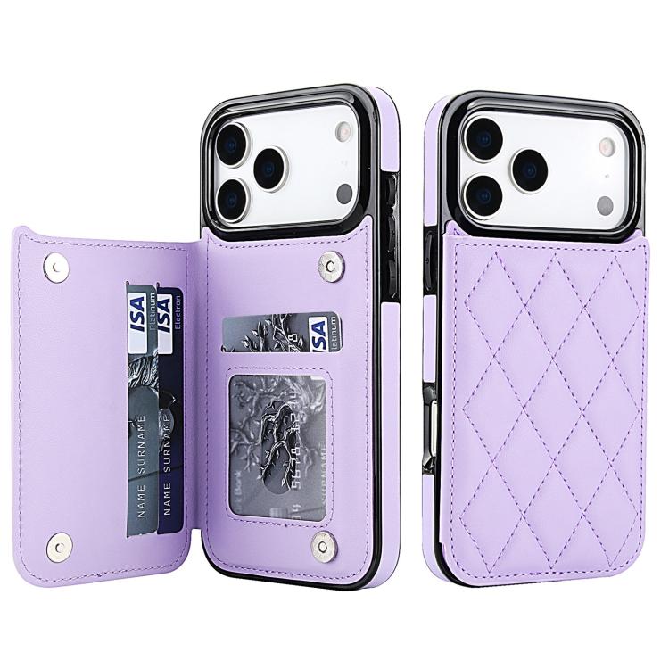 Funda de piel sintética con doble hebilla y diseño rómbico para iPhone 17 Pro (morada)