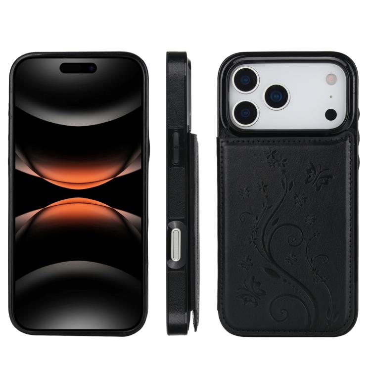 Funda de PU con doble hebilla y estampado de mariposa para iPhone 17 Pro (negra)
