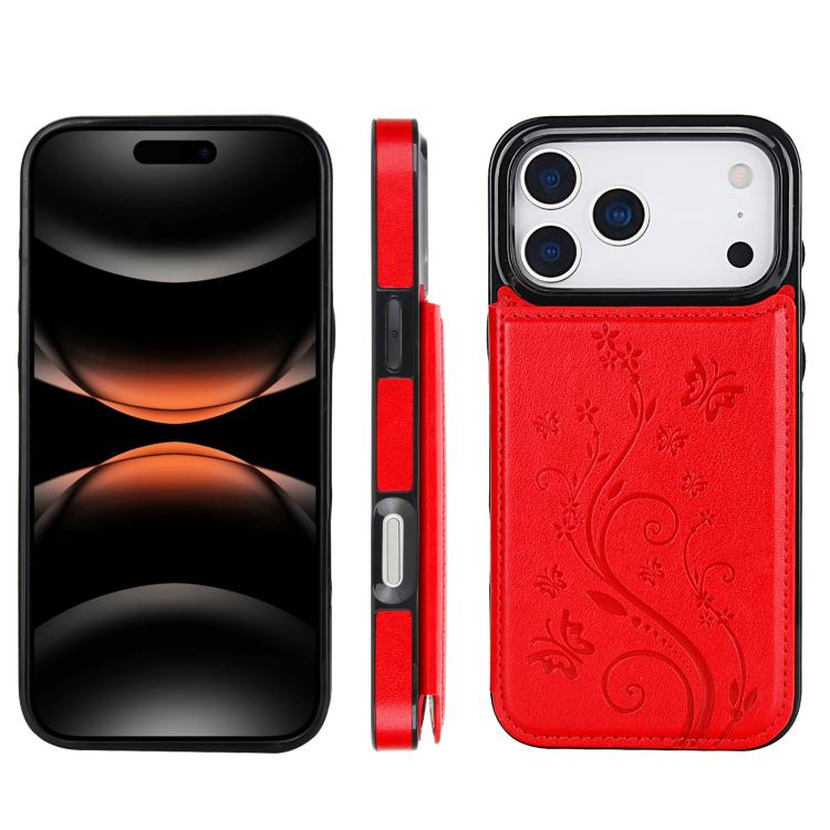 Funda de PU con doble hebilla y estampado de mariposa para iPhone 17 Pro (roja)