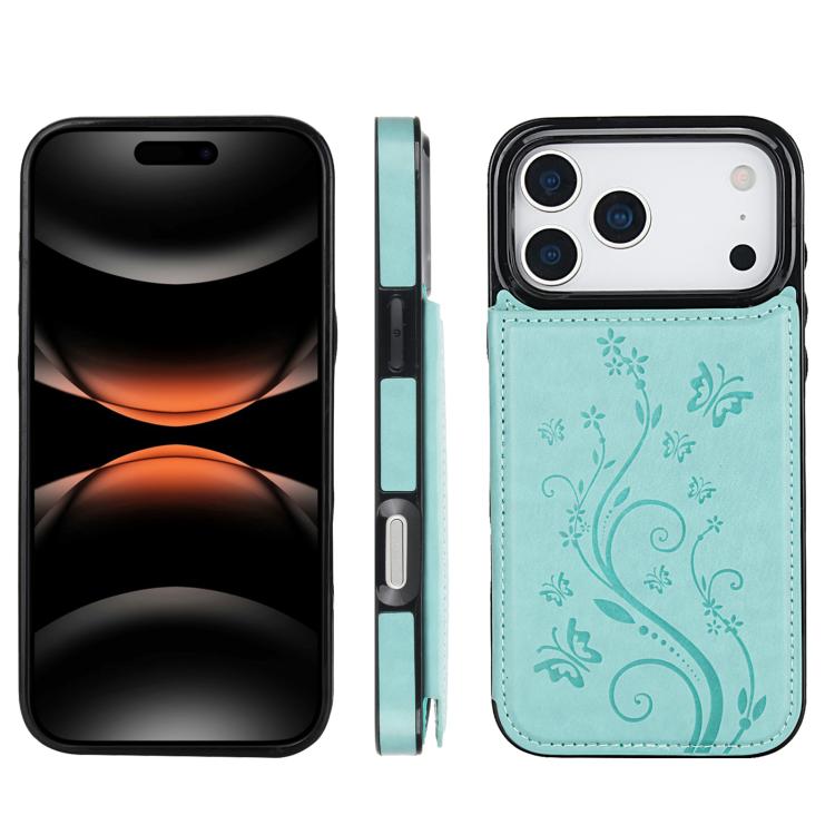 Funda de PU con doble hebilla y estampado de mariposa para iPhone 17 Pro (verde)