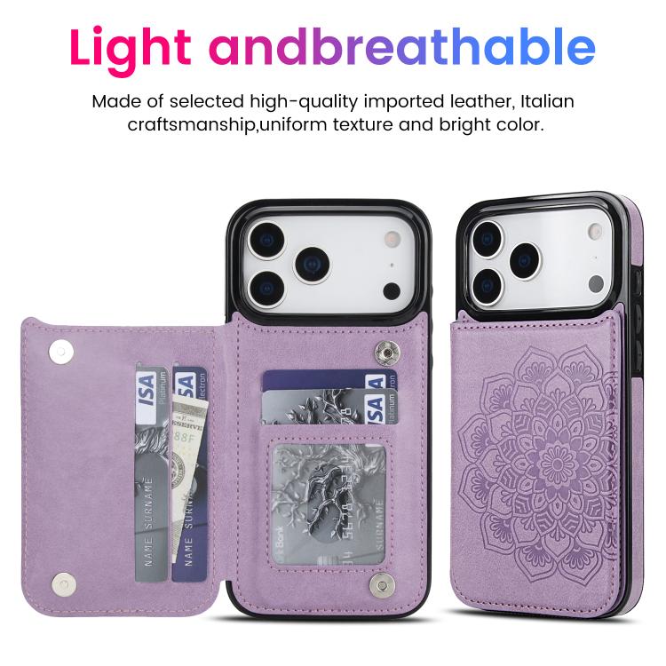 Funda de cuero con doble hebilla y diseño de mandala para iPhone 17 Pro Max (morado)