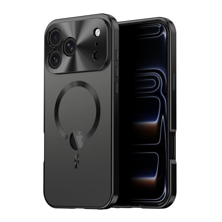 Funda de metal MagSafe sin marco para iPhone 17 Pro, con soporte 360°, forma de S, airbag (negro)