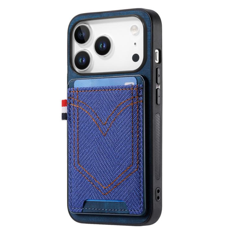 Funda de piel con textura vaquera para iPhone 17 Pro con ranura para tarjetas (azul)