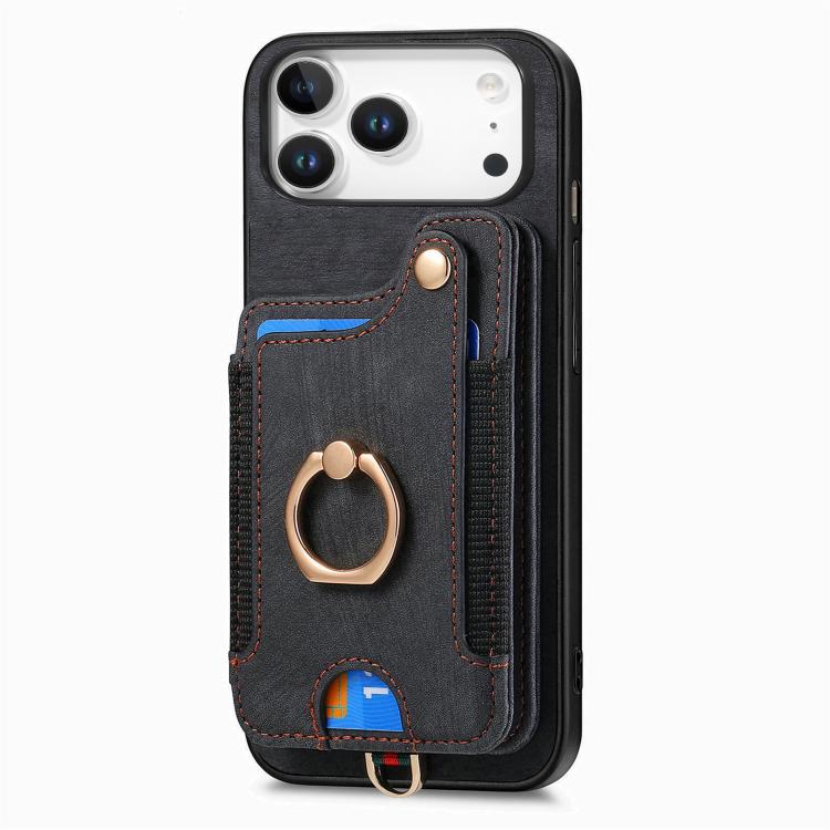 Funda tipo cartera con anillo multitarjeta y diseño retro para iPhone 17 Pro Max (negra)