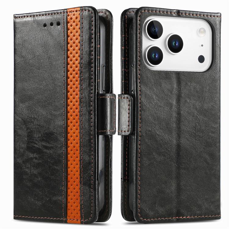 Funda Neo Splicing de cuero con doble hebilla magnética para iPhone 17 Pro Max (negra)