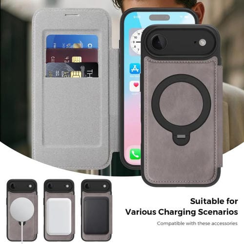 Funda de cuero con protección MagSafe RFID para iPhone 17, con rotación de 360 grados (gris)