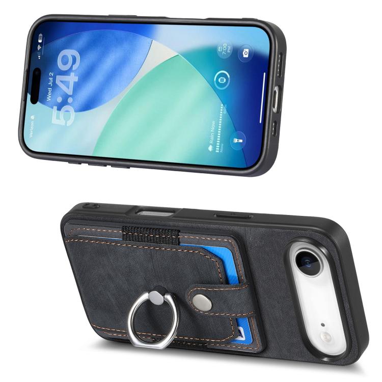 Funda tipo cartera con anillo y tarjetero para iPhone Air, estilo retro, color negro