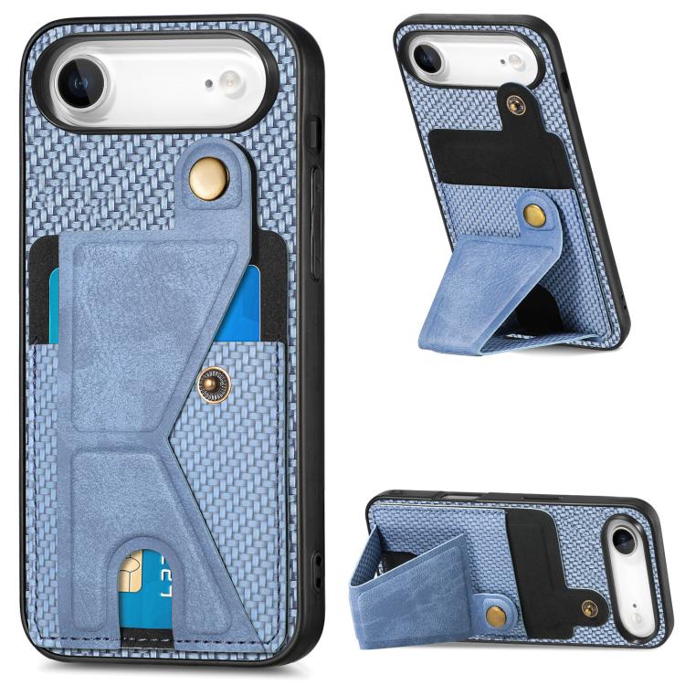 Funda tipo cartera de fibra de carbono con tarjetero en forma de K para iPhone Air (azul)
