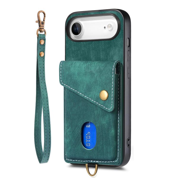 Funda de cuero plegable con correa para iPhone Air, estilo retro, tipo billetera (verde)