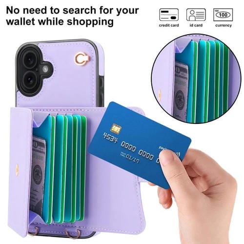 Funda para iPhone 17 con ranura para tarjeta RFID y cordón largo (morado)