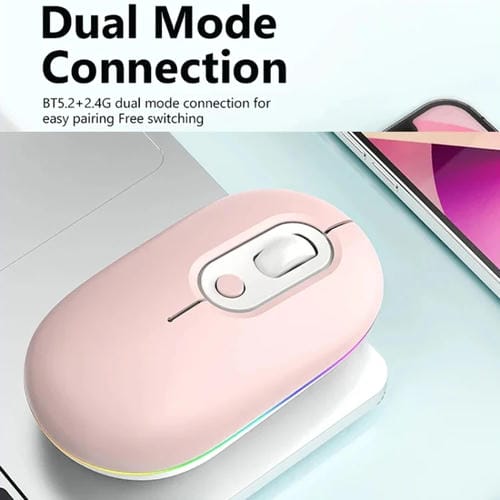 Ratón Inalámbrico Silencioso Recargable Iluminado 2,4G Bluetooth (Rosa)