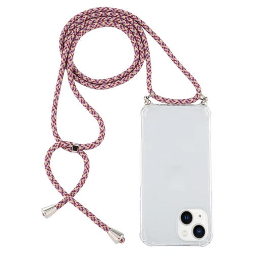 Estuche para iPhone 14 TPU Transparente a Prueba de Golpes Cuatro Esquinas con Cordón (Rojo Púrpura)