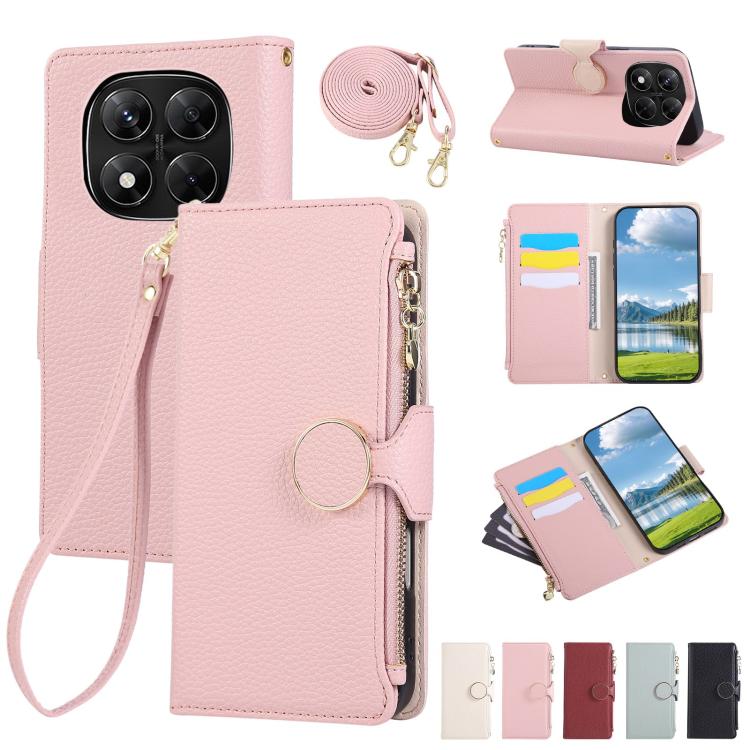Funda de cuero con hebilla redonda y cremallera para Redmi Note 14 Pro 5G, con correa cruzada (rosa)