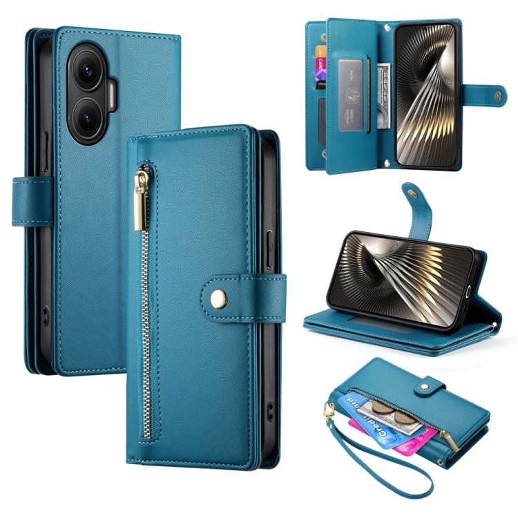 Funda de cuero con cremallera y ranura para tarjetas para Redmi K80/K80 Pro (azul)