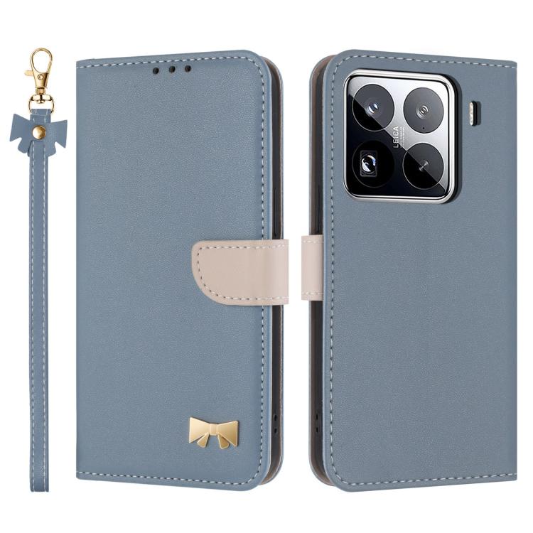 Funda de cuero con lazo metálico y correa para la mano para Xiaomi 15 Pro (azul claro)