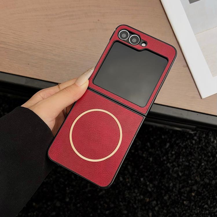 Funda MagSafe con textura Crazy Horse para Samsung Galaxy Z Flip6/Flip7 FE (roja)