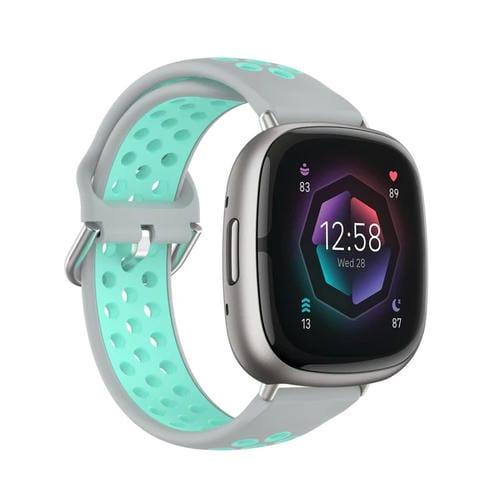 Correa de Silicona para Fitbit Sense 2 Perforada Transpirable (Gris + Verde Azulado)