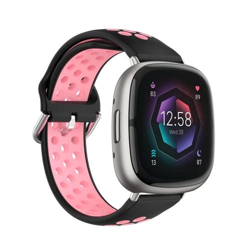Correa de Silicona para Fitbit Sense Perforada Transpirable Dos Colores (Negro + Rosa)