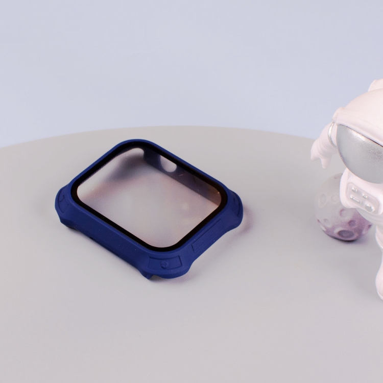 Marco PC Esmerilado + Estuche Protector Vidrio Templado para Apple Watch Series 8/7 41mm (Azul)