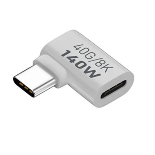 Adaptador de Transmisión USB 3.1 Tipo C Macho a Tipo C Hembra Curva Lateral 40 Gbps 8K Carga 140W 5A