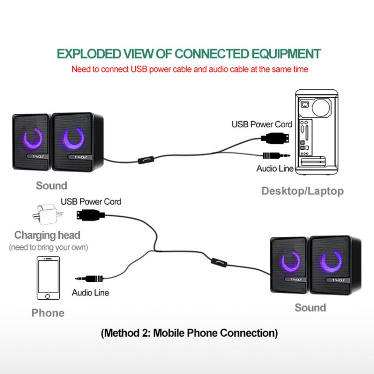 Altavoces de Escritorio T-Wolf S3 USB y 3,5mm para Teléfono, PC y Portátil con Subwoofer de Doble Diafragma (Negro)
