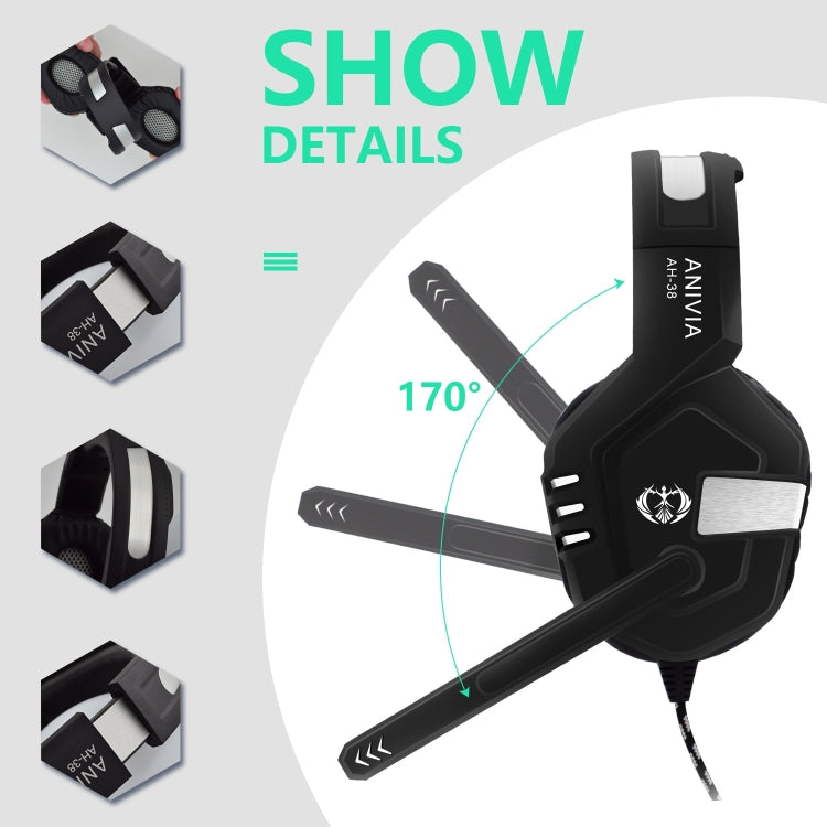 Auriculares de Juego Anivia AH38 con Cable 3.5 mm y Micrófono (Plata Negra)