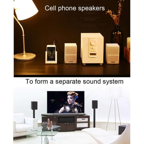• Compatible con dispositivos que cuentan con salida de audio Jack de 3,5 mm y equipos con entrada RCA