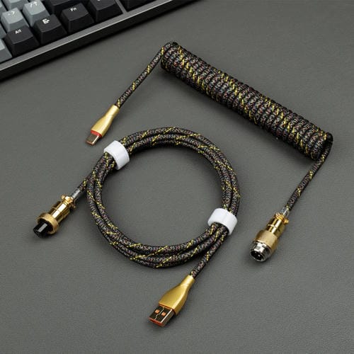 Cable de Resorte para Teclado Mecánico con Conector Aéreo Chapado en Oro (Negro)