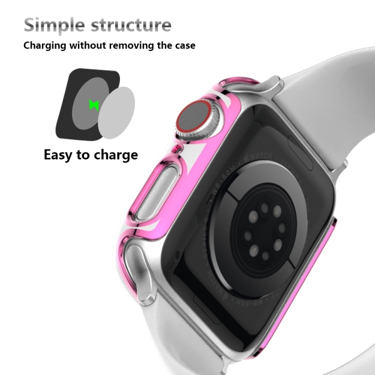 Caja de Reloj PC Galvanoplastia Dos Colores para Apple Watch Series 6 SE 5 4 40mm (Blanco Rosa)