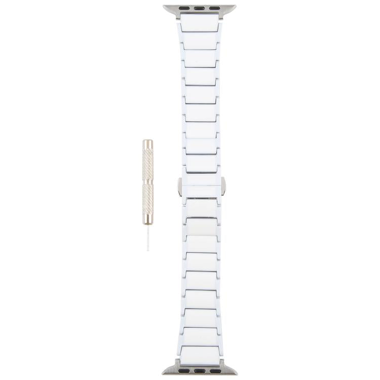 Correa de acero de 18 mm con tres cuentas de cerámica para Apple Watch de 42 mm, 41 mm, 40 mm y 38 mm (blanca)