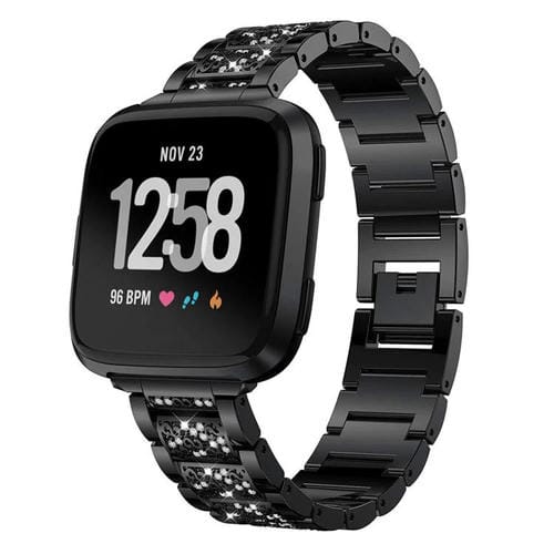 Correa de acero inoxidable con diamantes de imitación de 20 mm para Fitbit Versa 4/3/Sense 2/1 (negro)